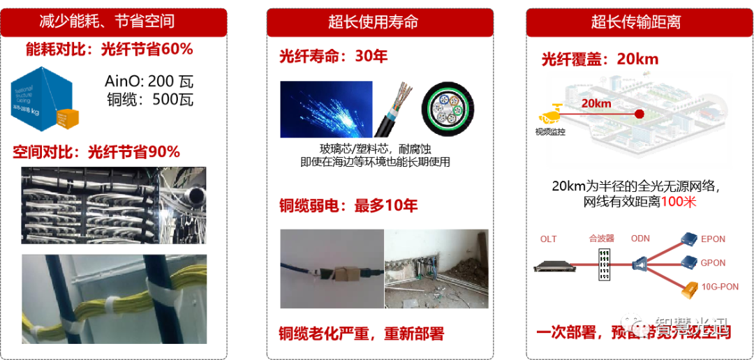 1、光纖網(wǎng)絡部署耐腐蝕、抗風化、壽命長,一次部署支持網(wǎng)絡不斷升級。