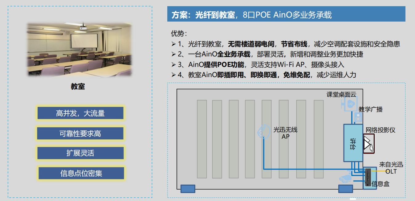 場(chǎng)景1:智慧教室,光纖到班級(jí),業(yè)務(wù)擴(kuò)展更靈活