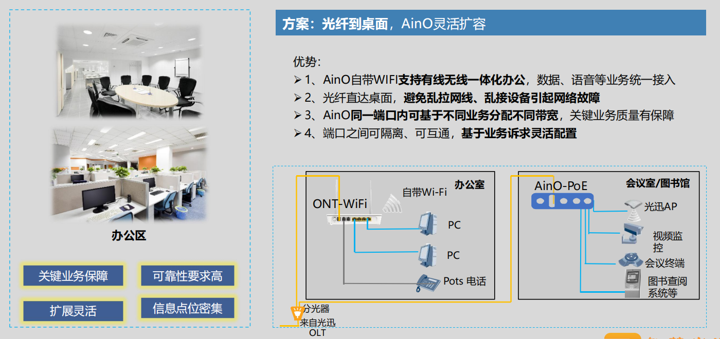 1、AinO將語音、數(shù)據(jù)一線接入,無需單獨(dú)布放語音線纜