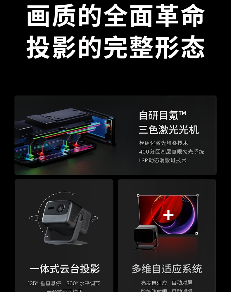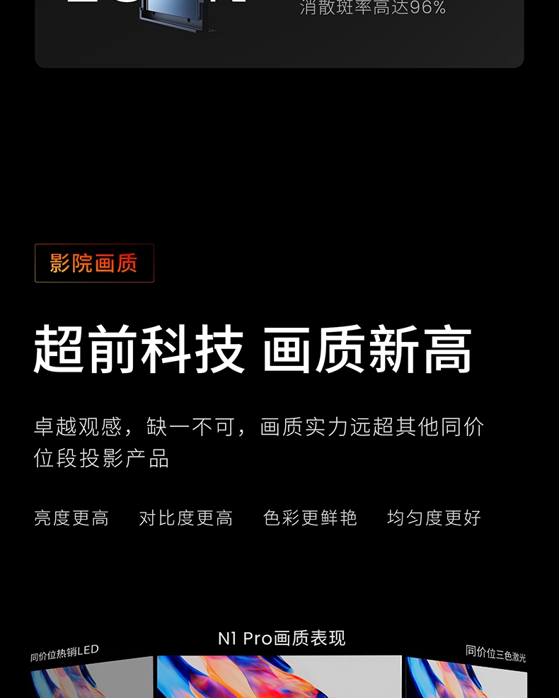 堅(jiān)果(JMGO)N1 Pro三色激光 云臺(tái)投影 投影儀家用 廣色域護(hù)眼智能家庭影院 1600:1對(duì)比度 3200ANSI