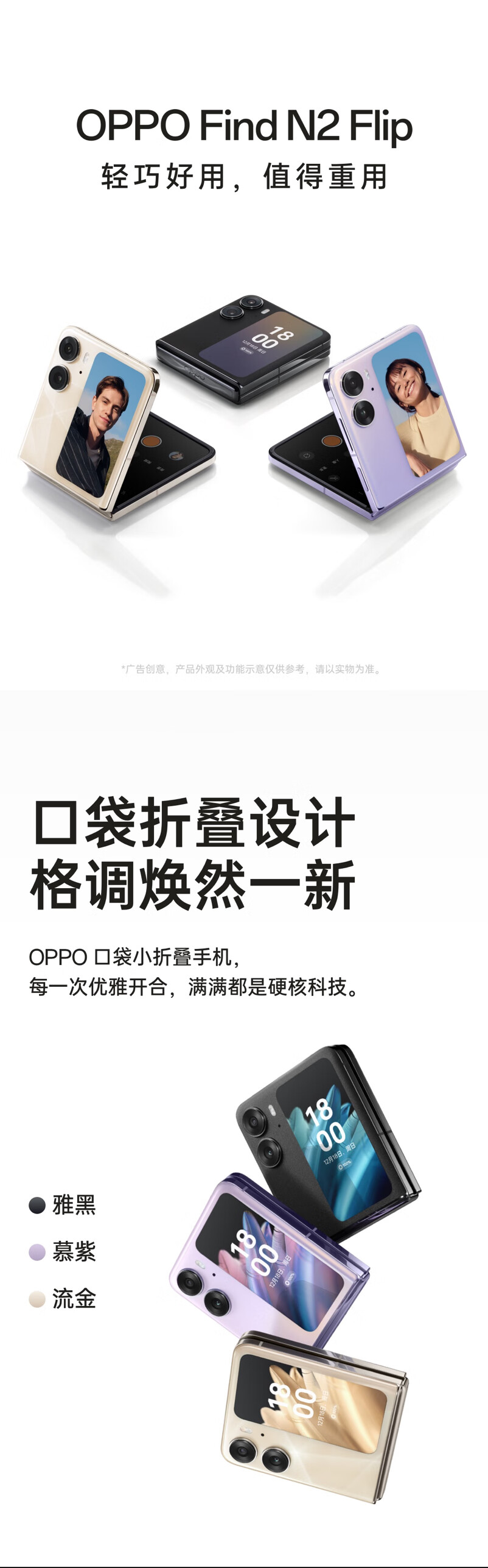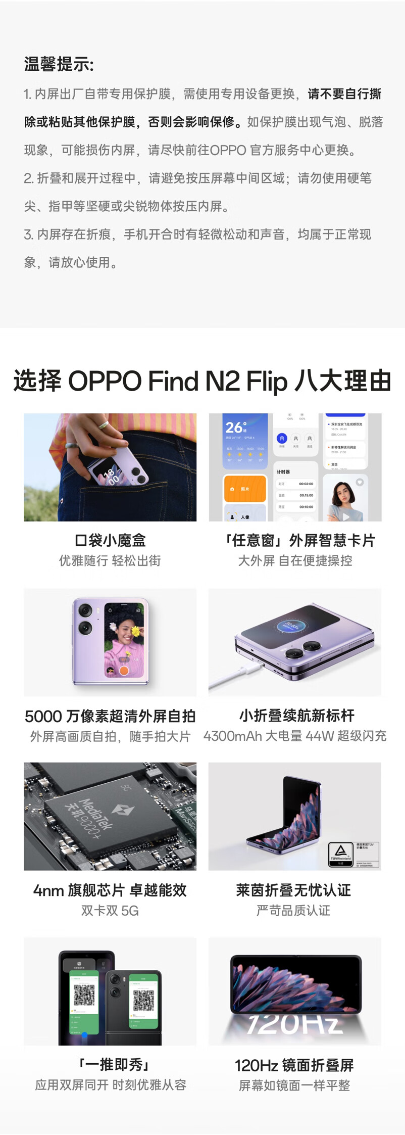 OPPO Find N2 Flip 任意窗 5000萬(wàn)超清自拍 120Hz鏡面屏 4300mAh大電量 5G 小折疊屏手機(jī)